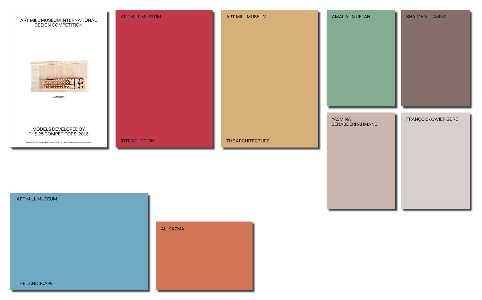 This box comprises nine booklets, including one booklet with essays introducing the future museum, one booklet on the architecture, one on the landscape, a poster reproducing the models from the Art Mill Museum International Design Competition, and booklets on the museum's first artist commissions by Yasmina Benabderrahmane, François-Xavier Gbré, Ali Kazma, Amal Al Muftah and Shaima Al-Tamimi.